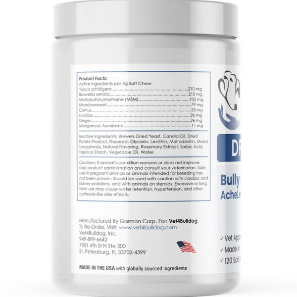 We use this amazing product for our young and our Sr English Bulldogs to ease generalized discomfort that comes with their respective ages. Helpful in both stages of life!