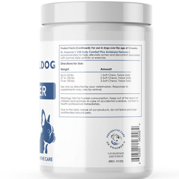 🌿V4B AcheLess & Comfort for Bulldogs and French Bulldogs are recommended for bulldogs who may be experiencing minor aches and discomfort due to normal daily activities.