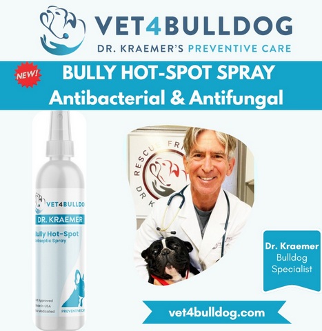 🌿V4B Yeasty Bully Antiseptic Hot Spot Spray for Bulldogs and French Bulldogs is designed to manage bulldog skin infections, yeast, bacteria, and hot spots without bathing.